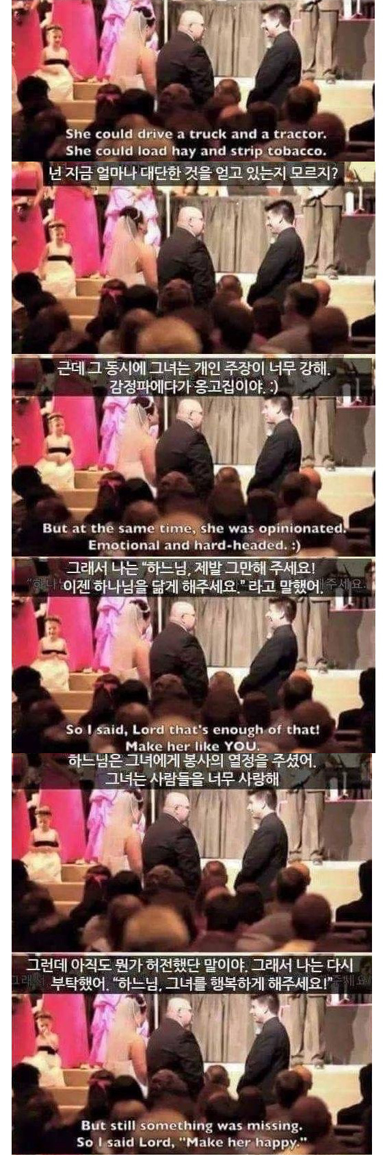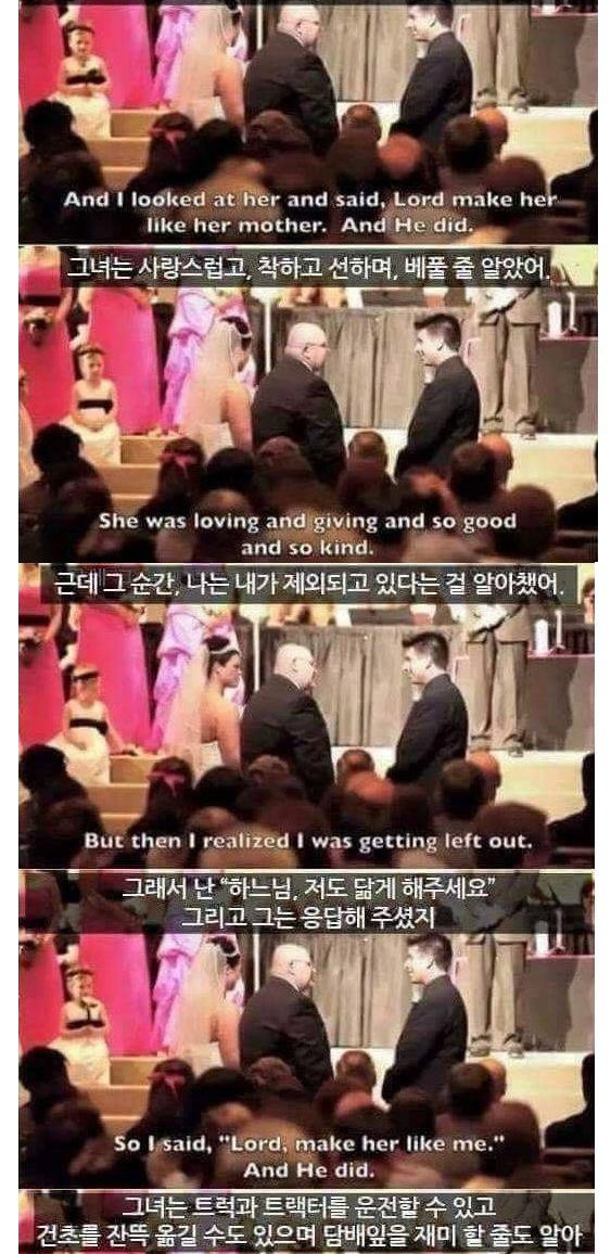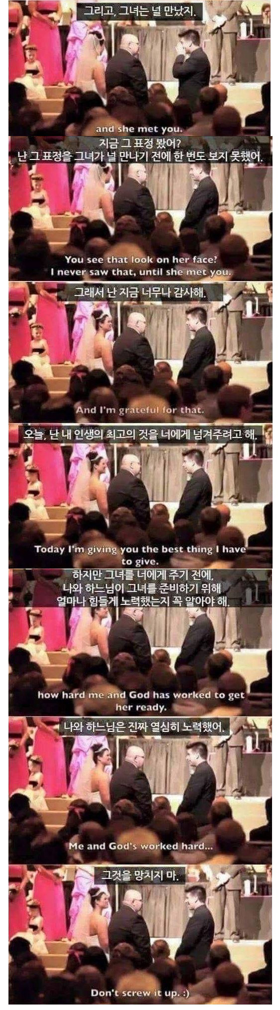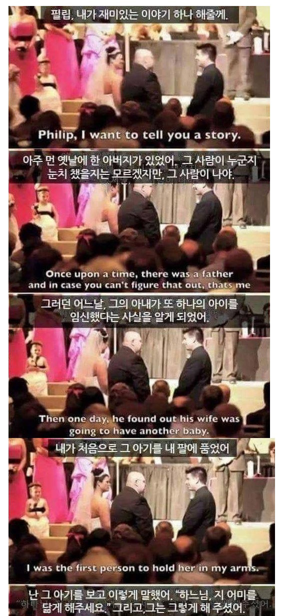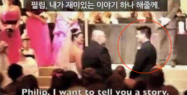 딸 결혼식에 한 남자가 사위에게 말을 전하고 있다. 아끼던 딸을 시집보내는 아버지의 마음...?! 사위에게 전한 말은?