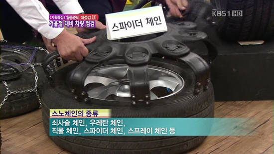 눈이 정말 많이 오는 폭설일 경우에는 스노우체인을 사용해야 한다. 전륜과 후륜차에 맞게 구동되는 바퀴에 장착을 하면 된다. 4륜구동차는 앞, 뒤 모든 바퀴에 장착하면 된다.
