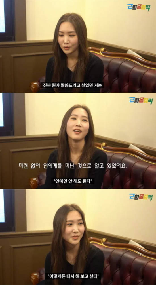 이어 홍유경은 '연예계에 미련이 없어서 떠났냐'라는 질문에 "말씀드리고 싶었던 건 전 누구보다 절실했다. 멤버 중 연습 기간이 제일 긴 편이었다"라고 답했다. 이어 그는 "제 딴에는 정말 어렵게 얻어낸 데뷔"라며 "아직도 그 길이 그립다"라고 솔직하게 털어놨다. 특히, 홍유경은 재데뷔를 하지 않은 이유를 설명하며 에이핑크에 대한 남다른 애정을 과시했다. 그는 "어떻게든 다시 해보고 싶었다"라며 "타 그룹에 속하면 나중에라도 에이핑크 멤버로 활동할 수 없겠더라"라고 전했다.
