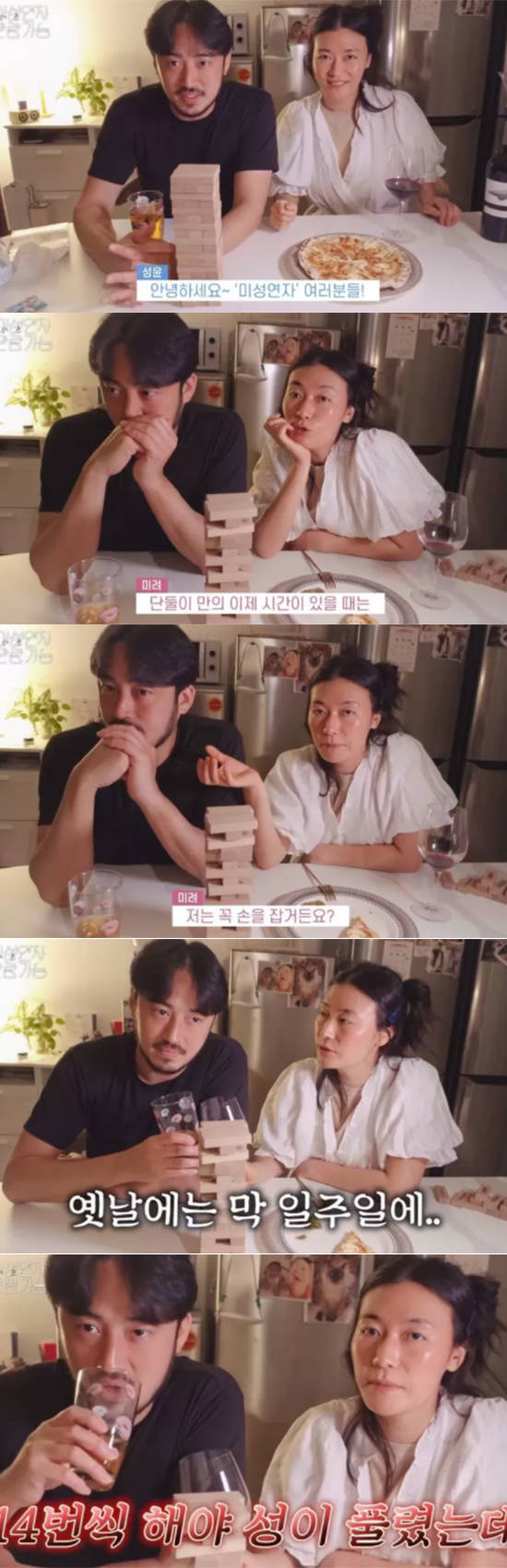 김미려, 정성윤 부부는 최근 자신의 개인 유튜브 채널 '미성연자 관람가능'에 '러브 젠가 하다 셋째 볼 뻔했습니다'라는 제목의 영상을 게재했다. 이날 해당 부부는 아들, 딸을 재운 뒤 둘만의 오붓한 시간을 즐기며 러브 젠가를 했다.