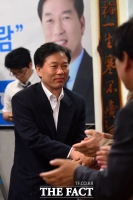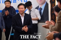 [TF포토] 환호 받으며 선거사무소 들어서는 오신환