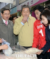 [TF포토] 시장 방문해 애로사항 경청하는 김무성-오신환