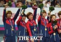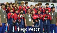 [TF포토] 女 핸드볼 금메달 '시상대가 쑥스러워'