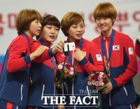 [TF포토] 女 핸드볼 금메달 '이제는 웃고 싶어'