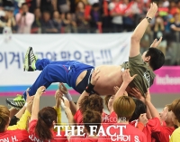 [TF포토] 여자 핸드볼 金 '임영철 감독에게 앙갚음(?)'
