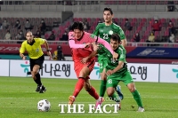 [TF포토] '관중 없이' 진행되는 한국과 북한의 월드컵 예선
