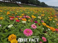 아산시, 곡교천변 가을 초화원 조성…백일홍·코스모스 '활짝'