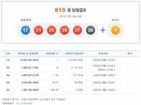 815회 로또당첨번호 '17, 21, 25, 26, 27, 36' 1등 7명 각 25억 원