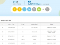 974회 로또 당첨번호 '1, 2, 11, 16, 39, 44' 1등 17명 각 13억