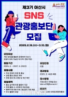 아산시, 제3기 SNS 관광홍보단 3월 10일까지 모집